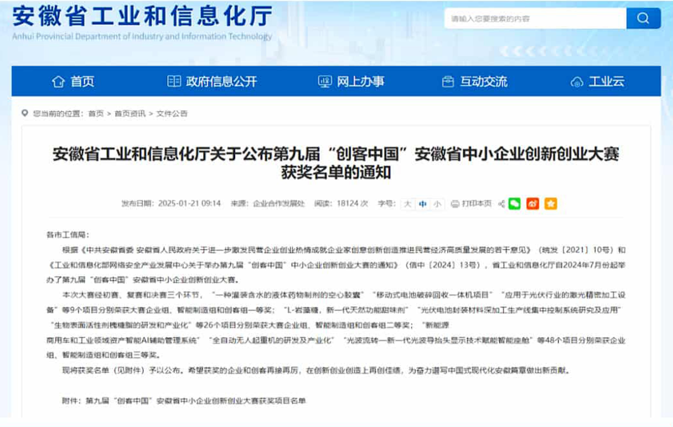 入選2022年度安徽省專精特新中小企業(yè) 入選2022年度安徽省創(chuàng)新型中小企業(yè)名單